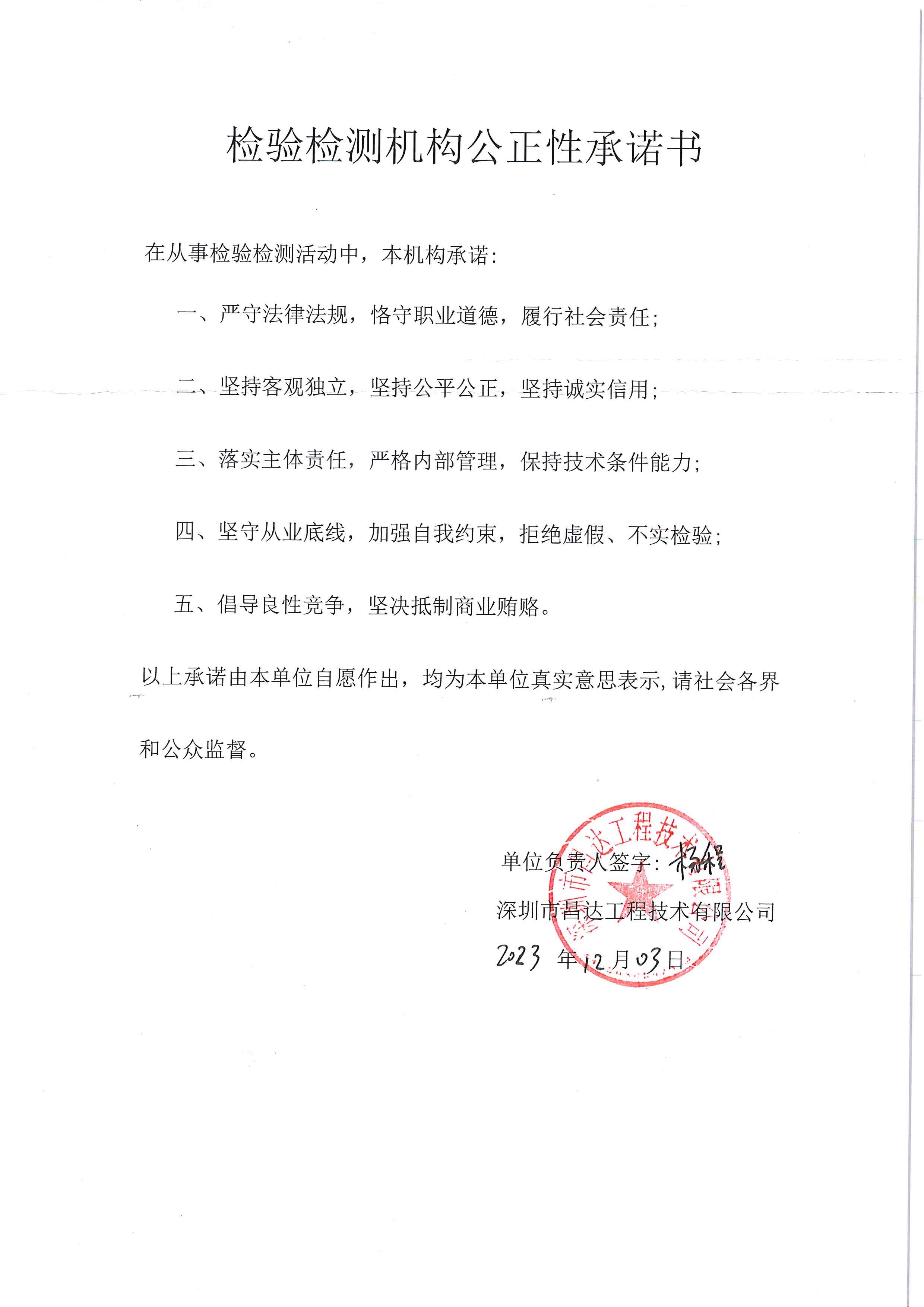 • 3、公司及其人員從事檢測活動,遵守國家相關法律法規的規定,遵循客觀獨立、公平公正、誠實信用原則,恪守職業道德,承擔社會責任。